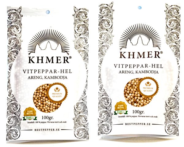 Vitpeppar KHMER är fräsch och härlig krydda som passar bra till fisk och fågel gärna i kombination med den röda. Äkta Vitpeppar är kärnan av Rödpeppar alt. svartpeppar. Vi använder endast vatten för att ta fram kärnan vilket förklarar den fräscha smaken och aromen på Vitpeppar KHMER